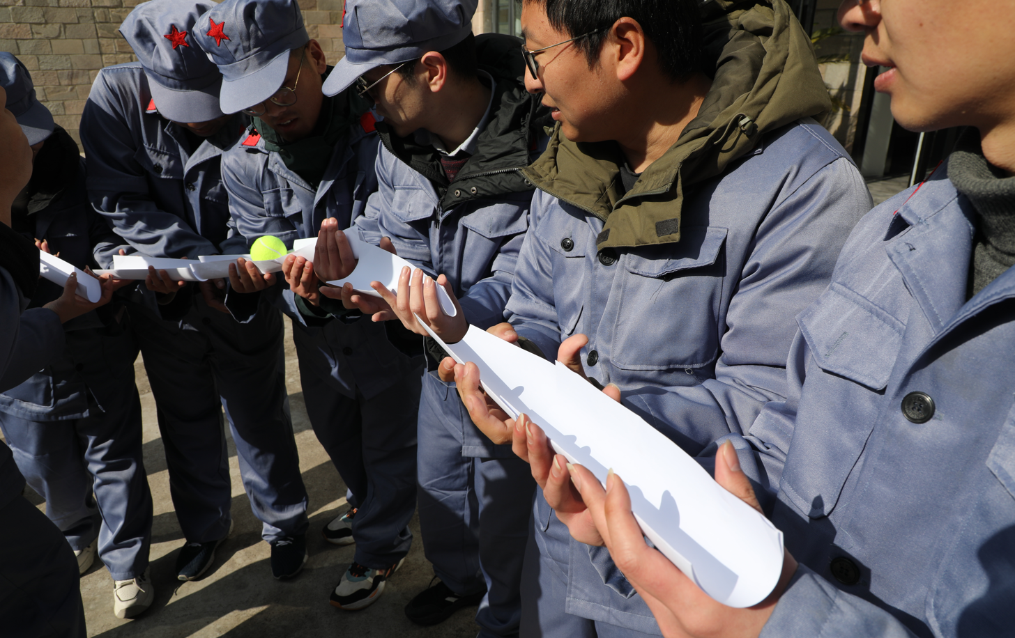 隊伍比賽開始之前,教官通過訓練軍姿、小游戲來和學員們進行互動,營造出一種輕松愉悅而又充滿激情的氛圍。接下來,各個小組計時完成“挑戰NO.1、大河之舞、無軌電車、動力火車、棋藝人生、沙場點兵”等多個拓展項目。