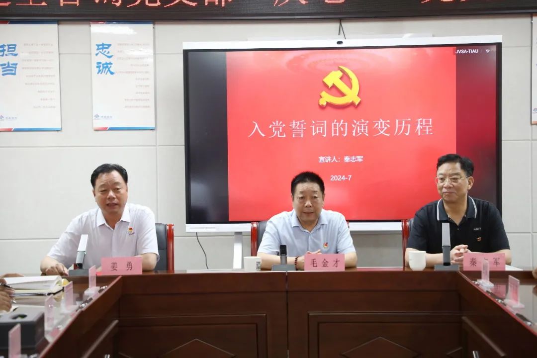 為隆重紀(jì)念中國共產(chǎn)黨成立103周年,深刻回顧和傳承黨的光輝歷程,公司黨支部在會議室隆重舉辦了以“入黨誓詞的演變”為主題的理論宣講活動。此次活動旨在通過詳細(xì)介紹入黨誓詞的演變歷程,引導(dǎo)全體黨員進(jìn)一步堅定理想信念,筑牢初心和使命。