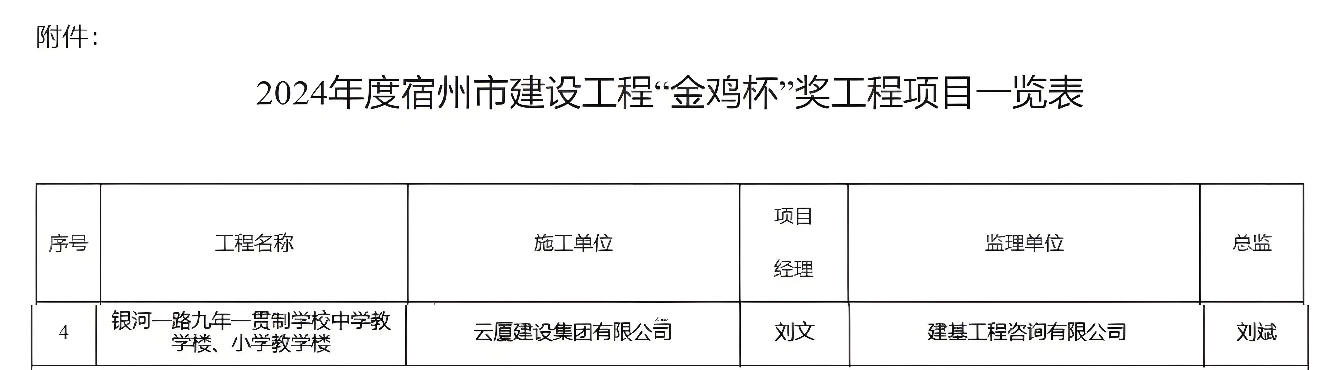 近日,由公司監(jiān)理的銀河一路九年一貫制學(xué)校中學(xué)教學(xué)樓、小學(xué)教學(xué)樓項(xiàng)目,榮獲2024年度宿州市建設(shè)工程"金雞杯"獎(jiǎng)(市優(yōu)質(zhì)工程),項(xiàng)目總監(jiān)理工程師劉斌同志獲評(píng)"優(yōu)秀總監(jiān)理工程師"稱號(hào)。