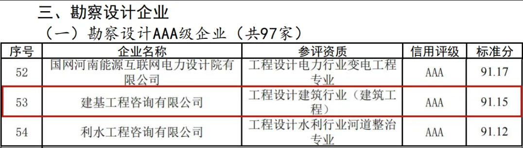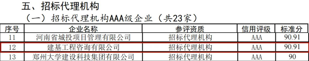 近日,鄭州市城鄉(xiāng)建設(shè)局發(fā)布了《關(guān)于發(fā)布2024年度鄭州市建筑企業(yè)信用評(píng)價(jià)結(jié)果的通告》,公司榮獲勘察設(shè)計(jì)AAA級(jí)企業(yè)、招標(biāo)代理機(jī)構(gòu)AAA級(jí)企業(yè)等榮譽(yù)。