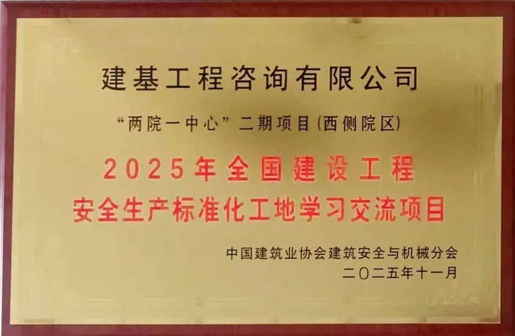 近日,中國建筑業協會正式公布2025年建設工程安全生產標準化工地學習交流項目名單,公司監理的“兩院一中心”二期項目(西側院區)成功入選。該獎項前身為“國家AAA級安全文明標準化工地”,經國家住建部批準設立,被譽為建筑施工安全管理領域的“魯班獎”,是全國范圍內建筑安全文明施工領域的最高榮譽,標志著該項目安全管理水平躋身全國先進行列。