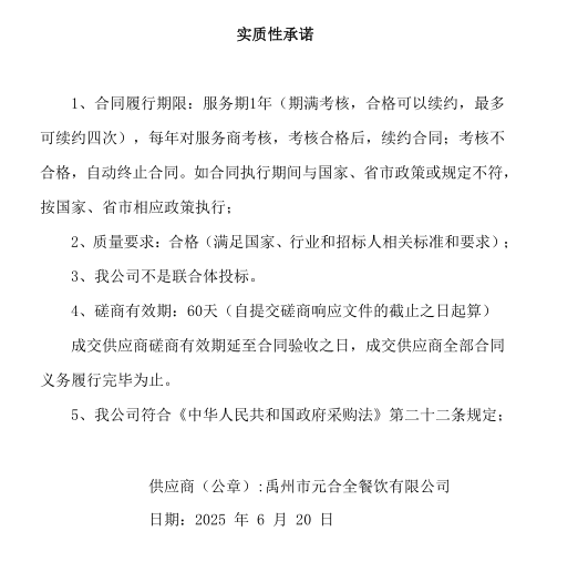 供應商名稱:禹州市元合全餐飲有限公司
