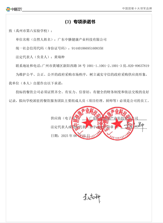 YZCG-DLG2025028 | 禹州市第六實(shí)驗(yàn)學(xué)校餐飲服務(wù)項(xiàng)目 | 廣東中膳健康產(chǎn)業(yè)科技有限公司 | 廣州市黃埔區(qū)新陽西路 38 號 1001-1、1001-2、1001-3 房 | ||||