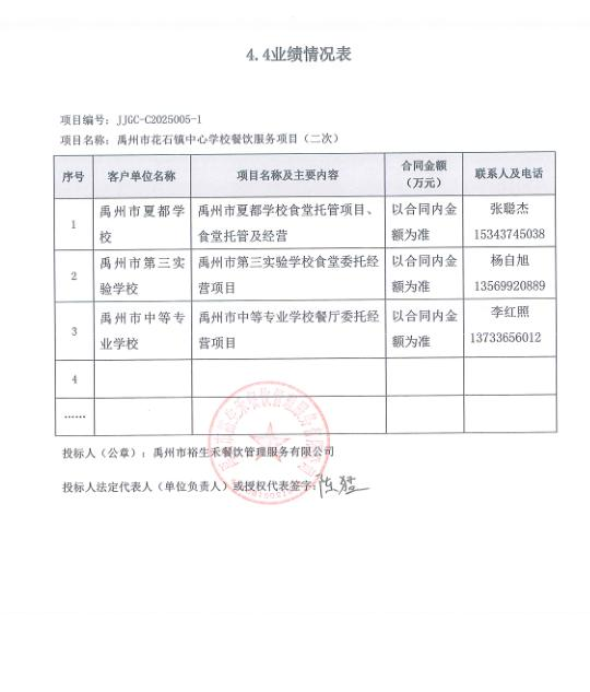 第一成交候選人:禹州市裕生禾餐飲管理服務有限公司
