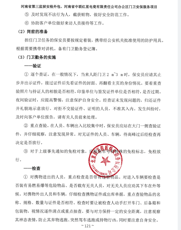 一、項目名稱:河南省第三監(jiān)獄安檢外包、河南省中聯(lián)紅星電瓷有限責(zé)任公司辦公區(qū)門衛(wèi)安保服務(wù)項目